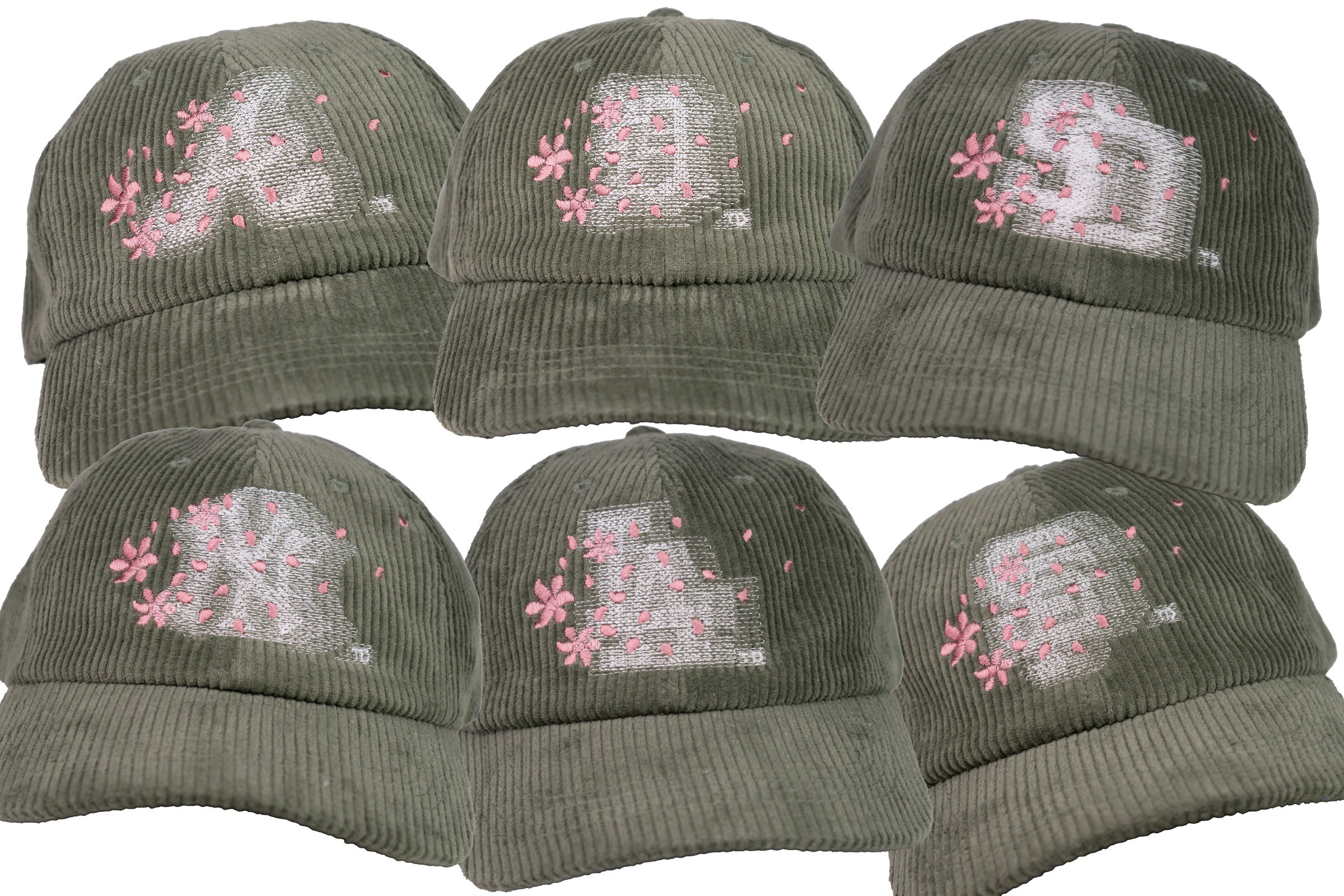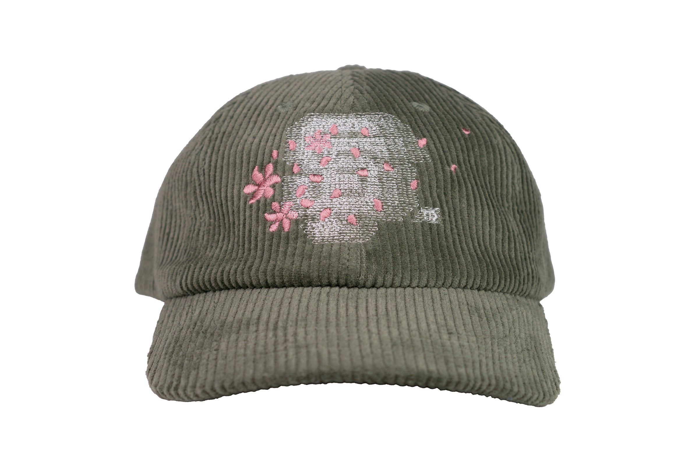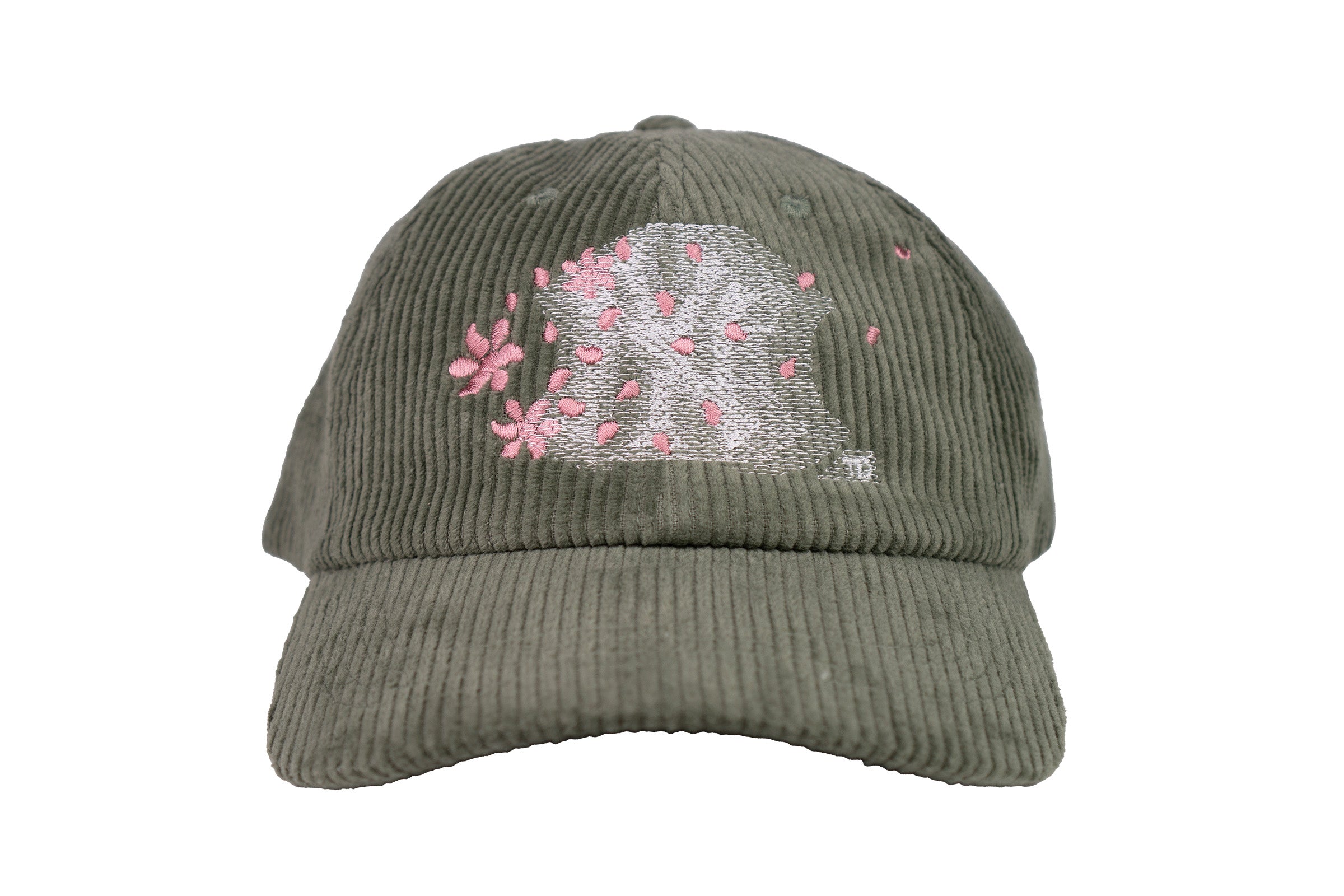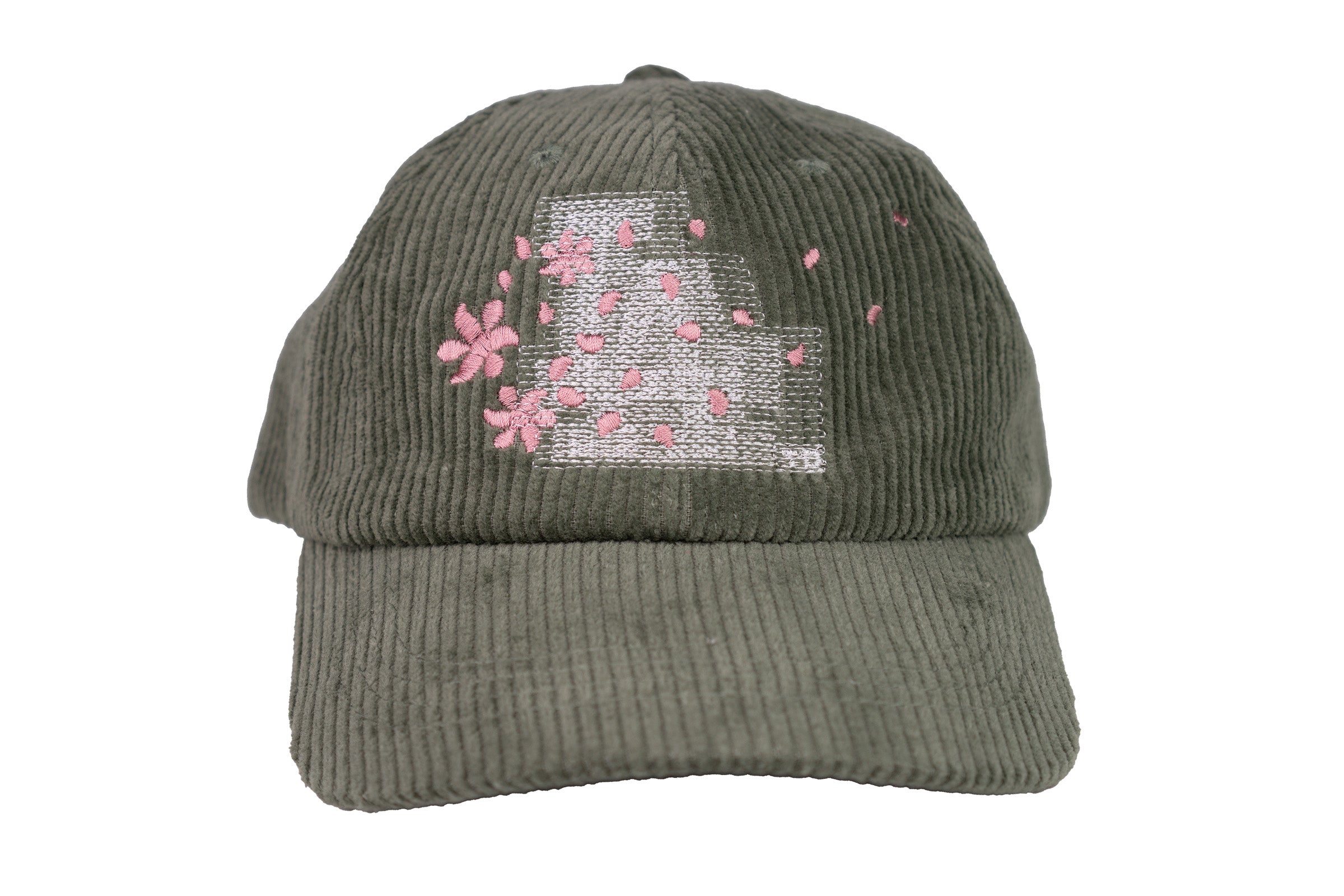 - dusty sage corduroy fabric | drifting petal embroidery over motion city blur front hit | petal propellerette flag blur right side hit