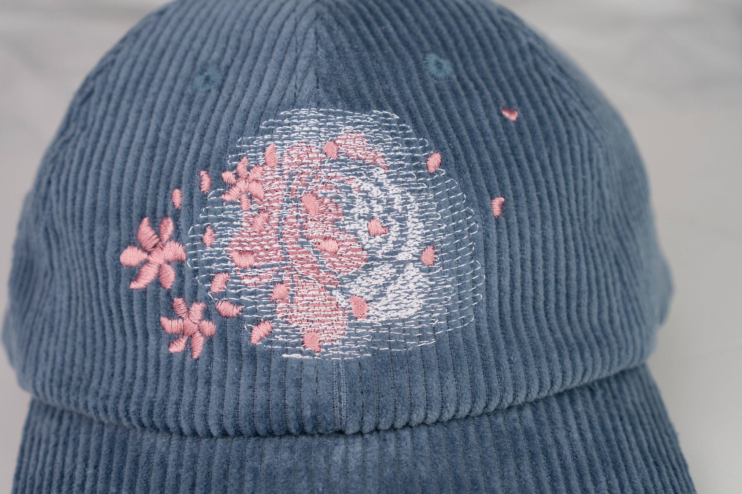 - stone blue corduroy fabric | drifting petal peony motion blur front hit | petal propellerette flag blur right side hit