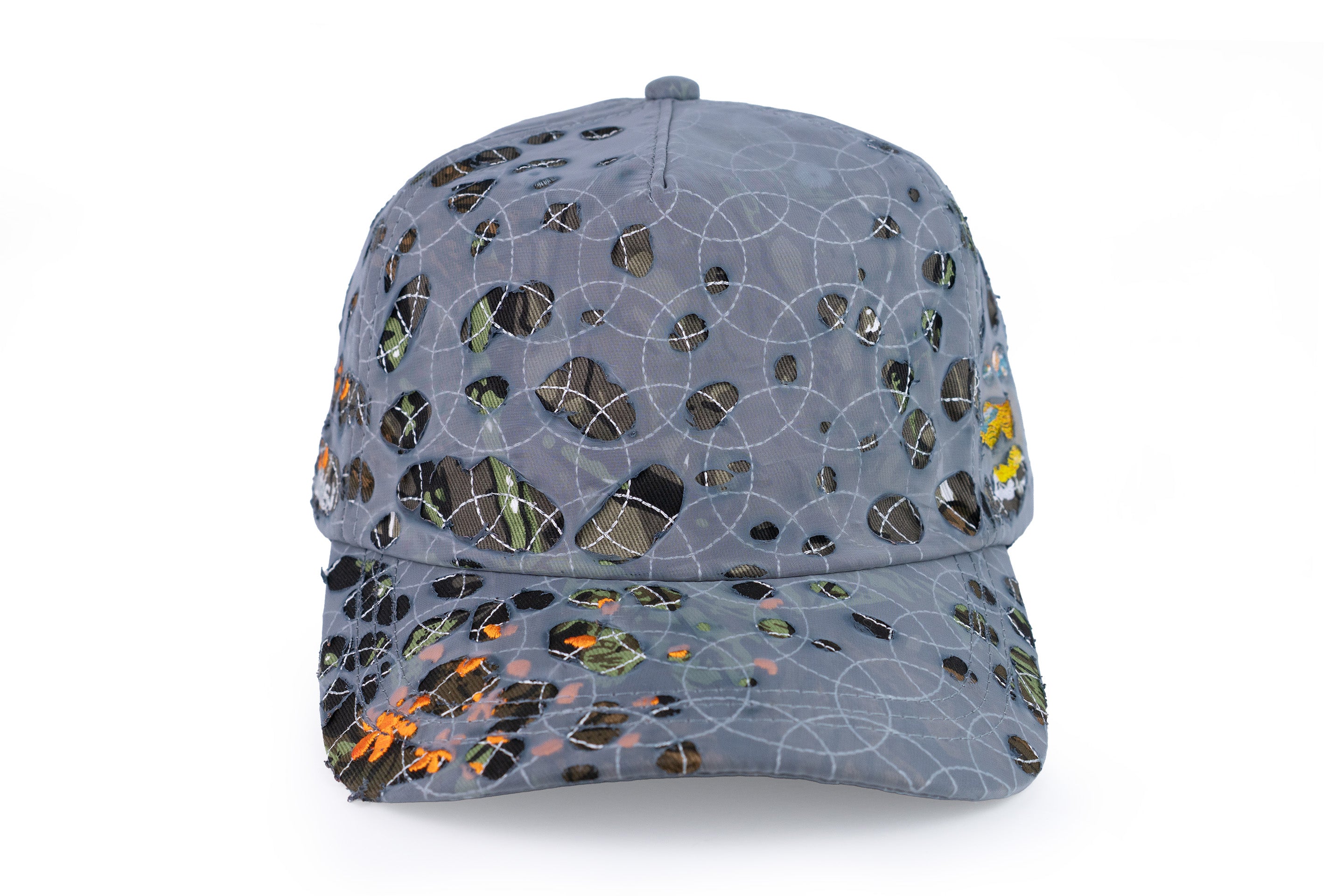 - slate grey sheer overlay that can be distressed to reveal tree moss camo base and embroidery underneath, very exciting stuff