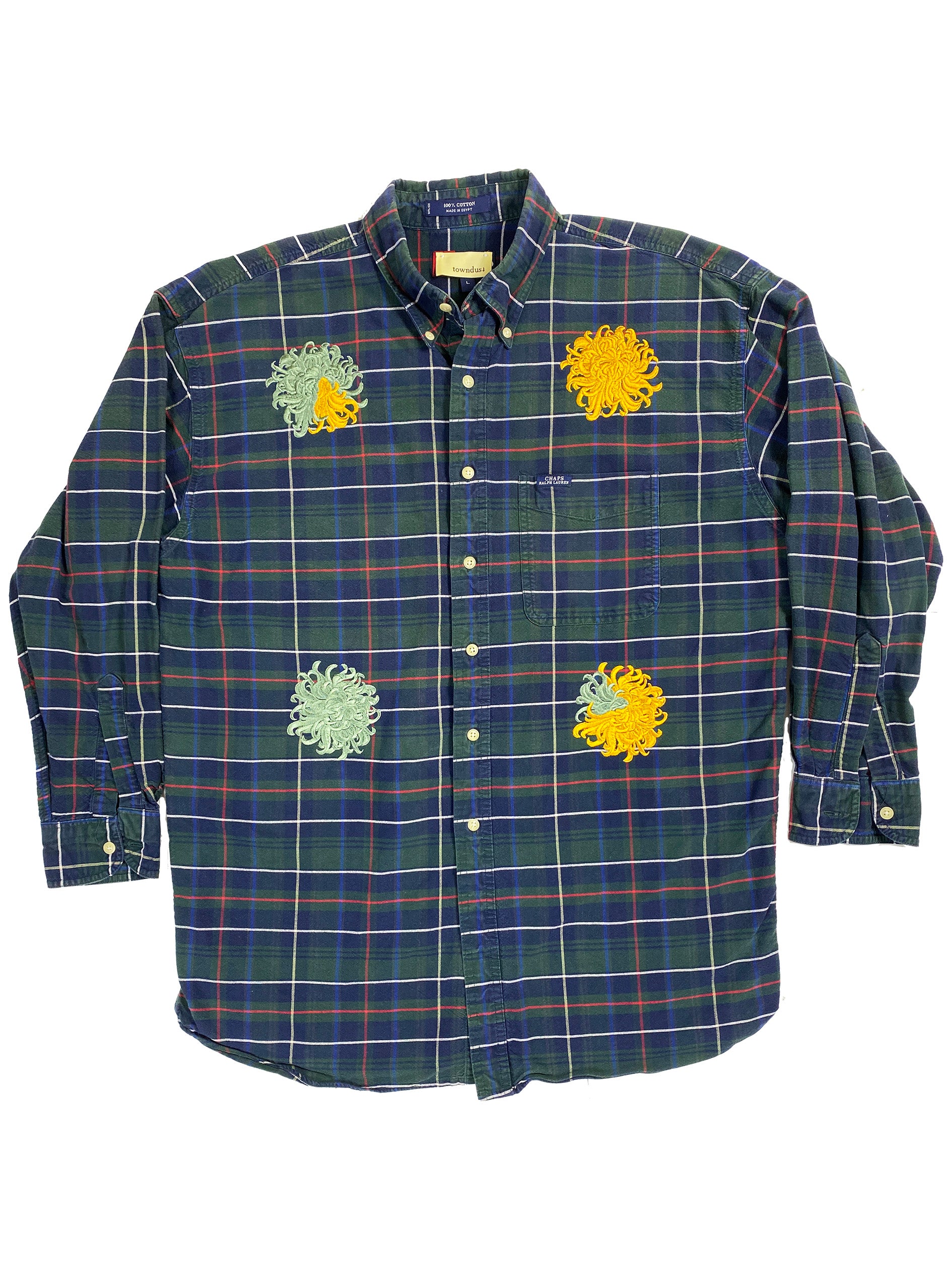 jade & mustard chrysanthemum plaid cotton shirt | L/XL