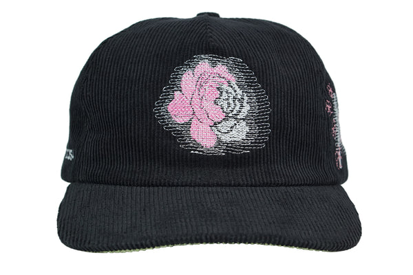 • unstructured (floppy) 5-panel custom construction, medium crown w/ snapback closure