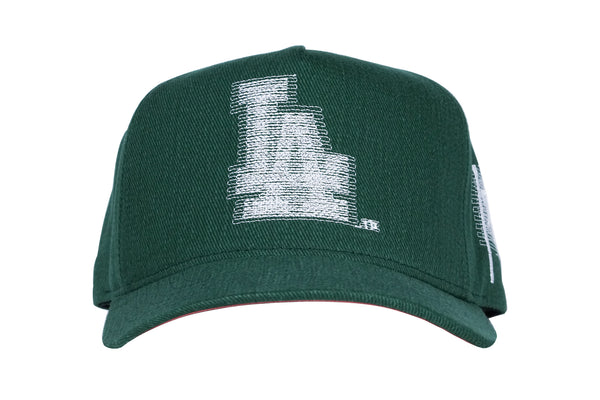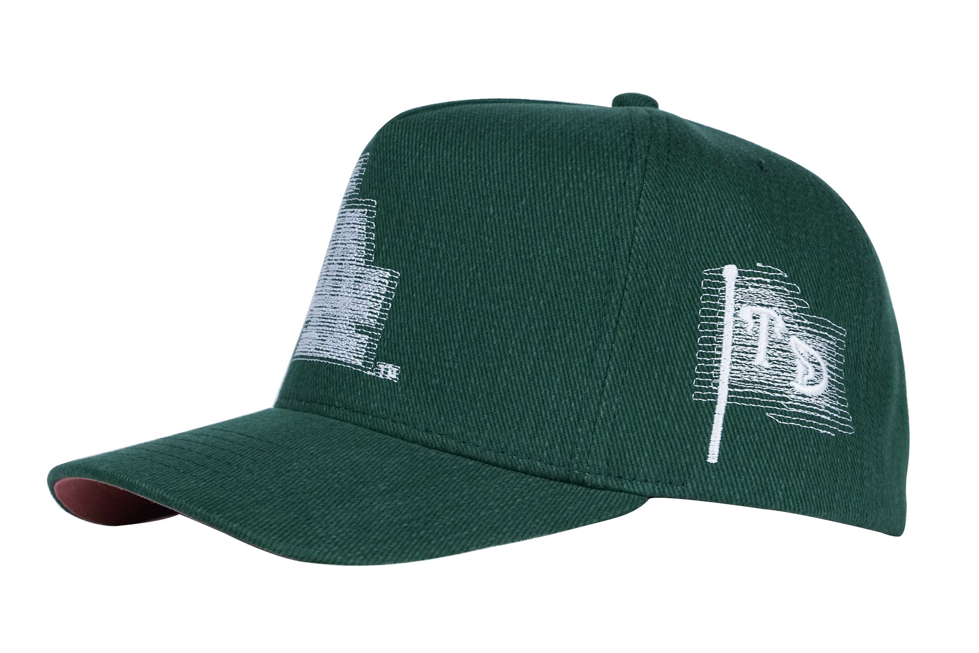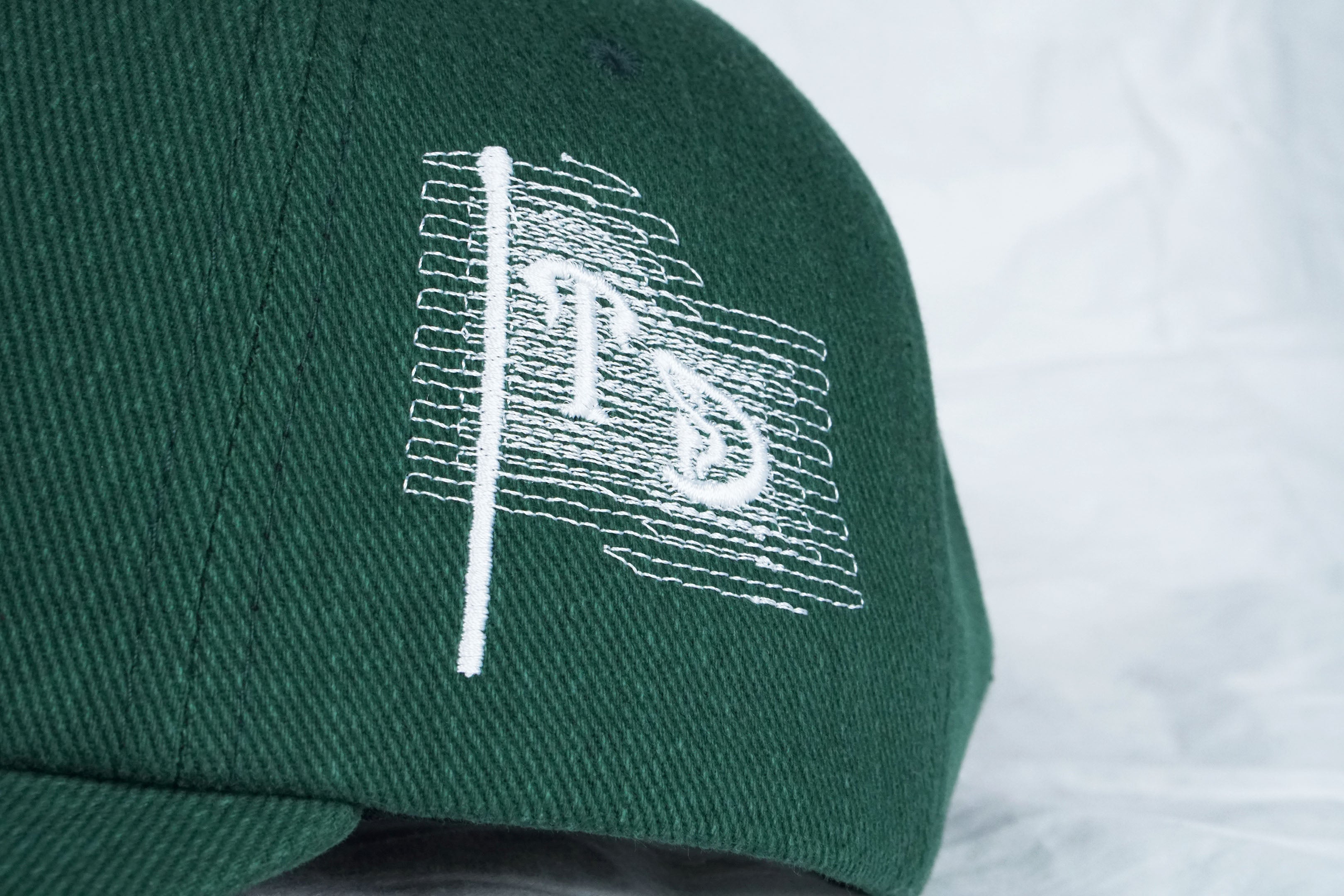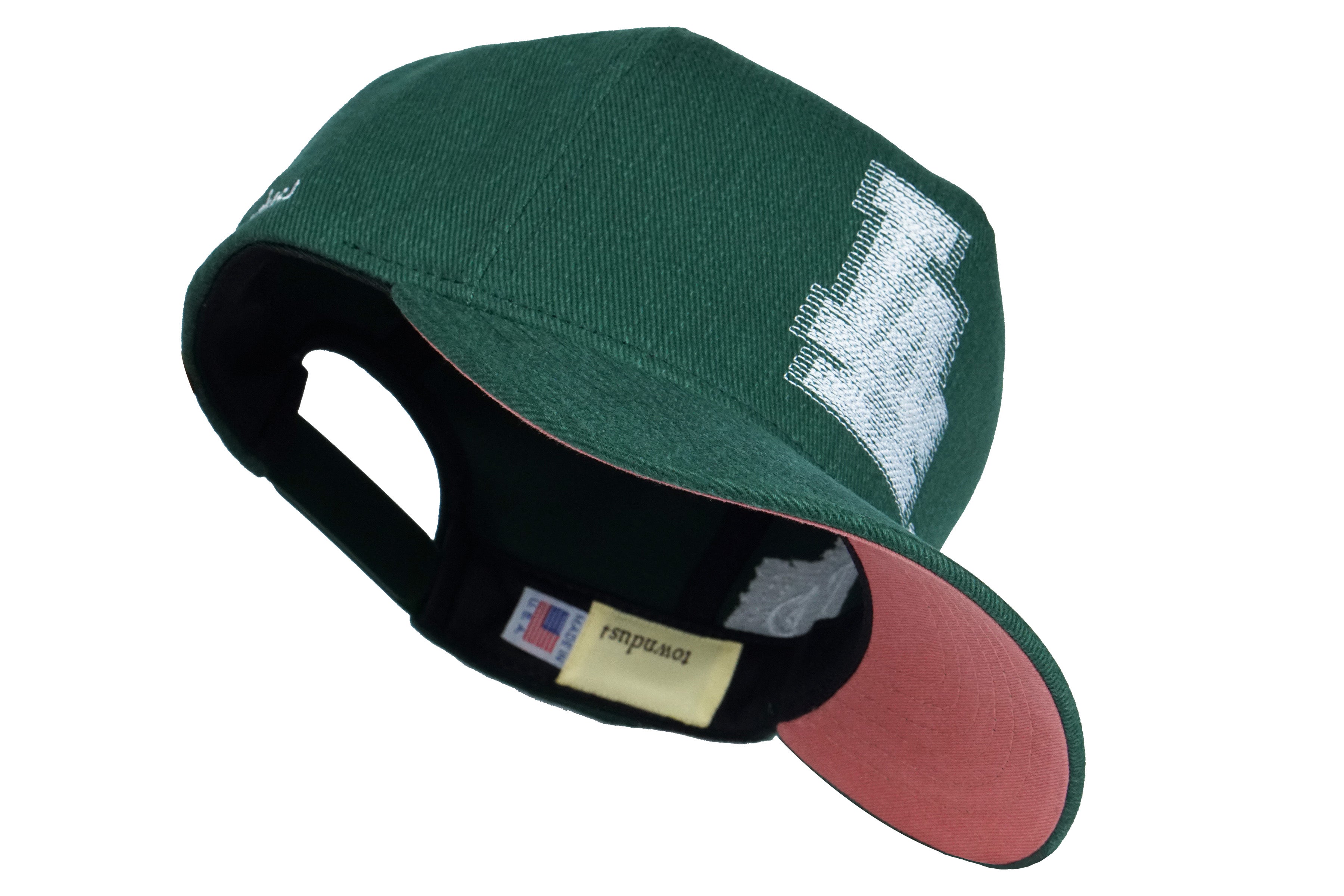 • forest green 12 oz. brushed bull denim, brick pink underbrim (green eggs & spam)