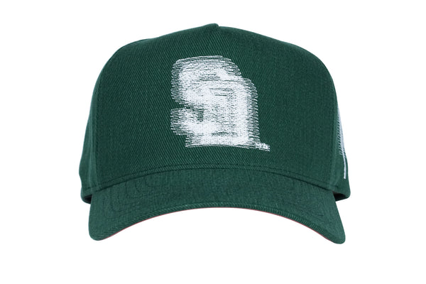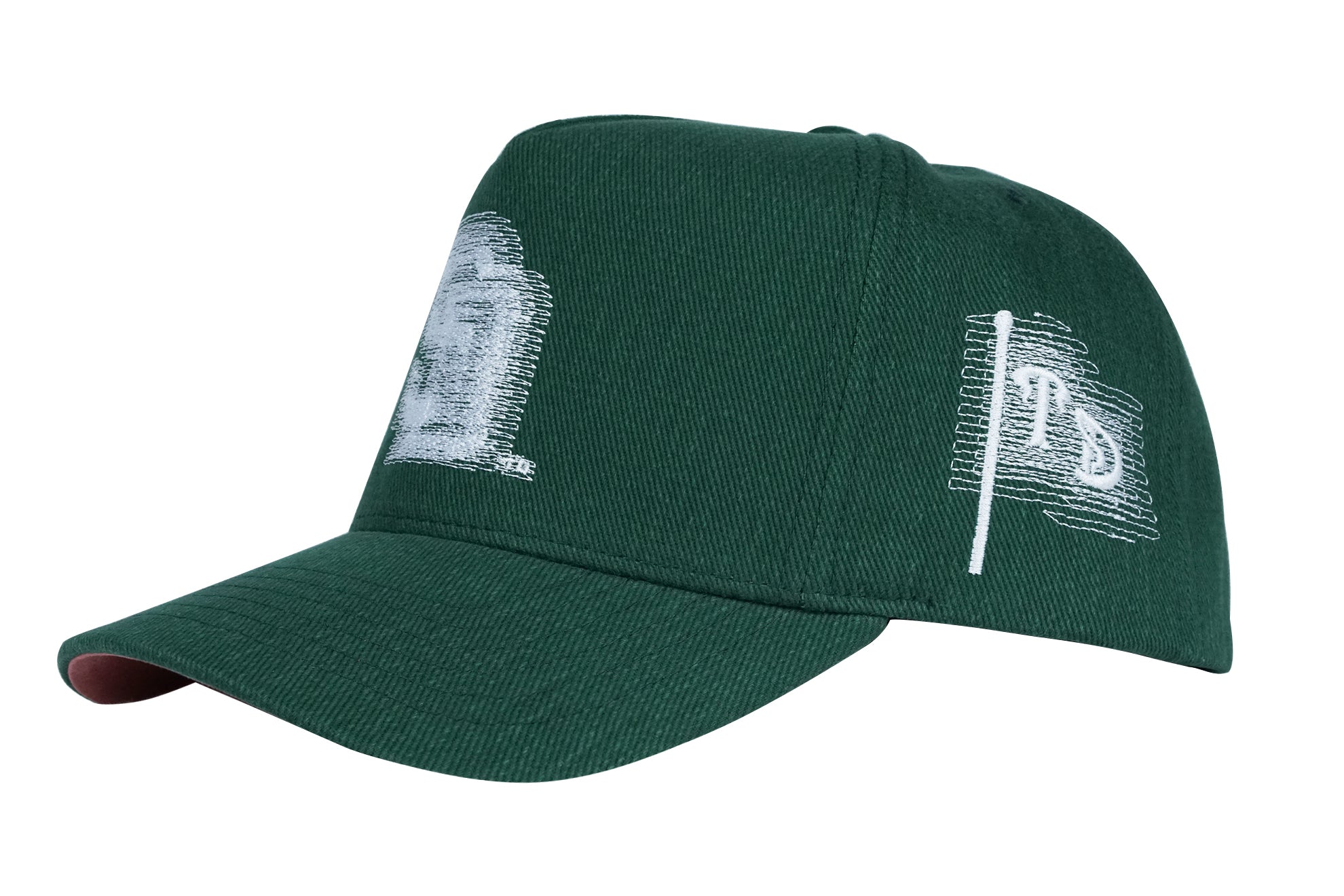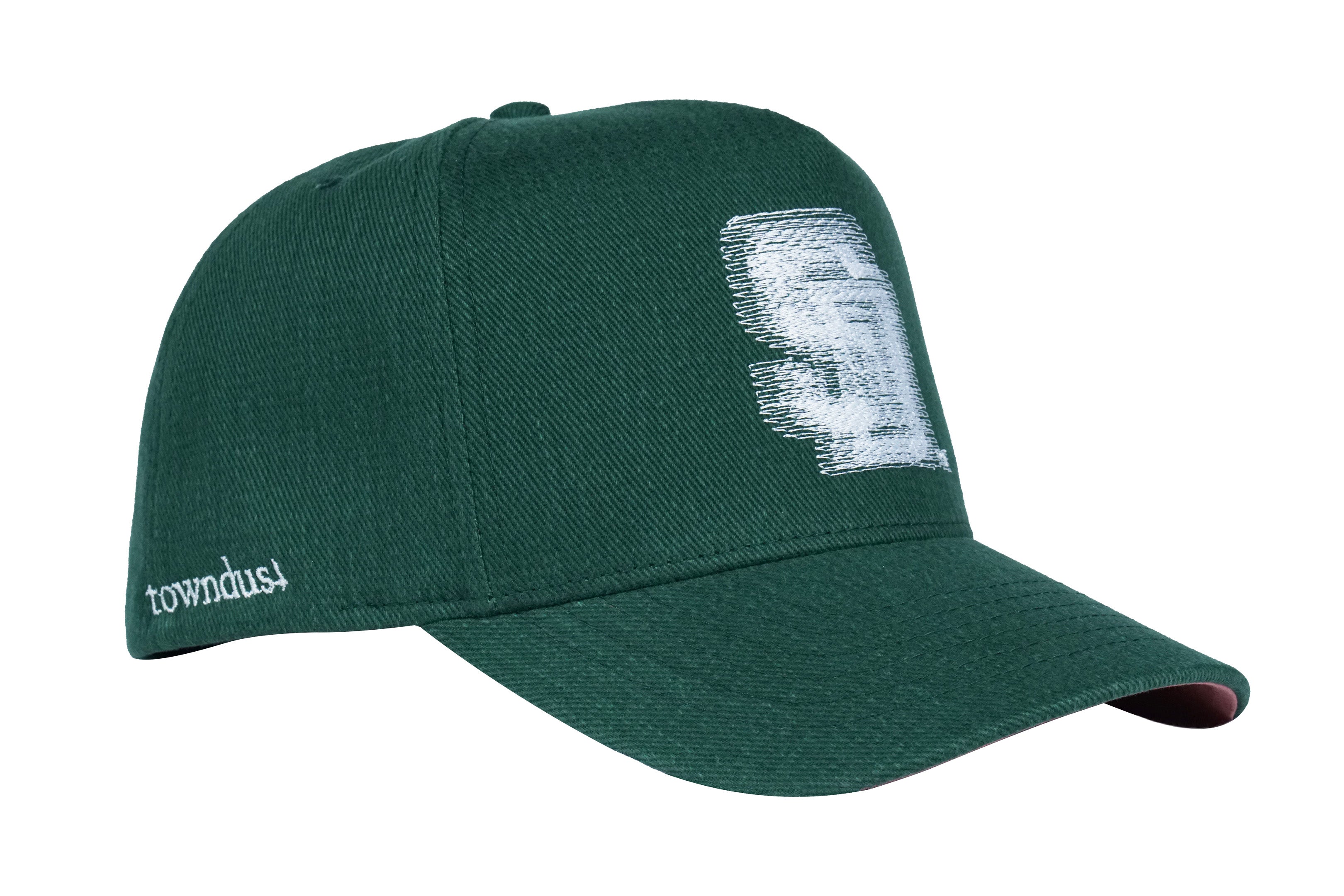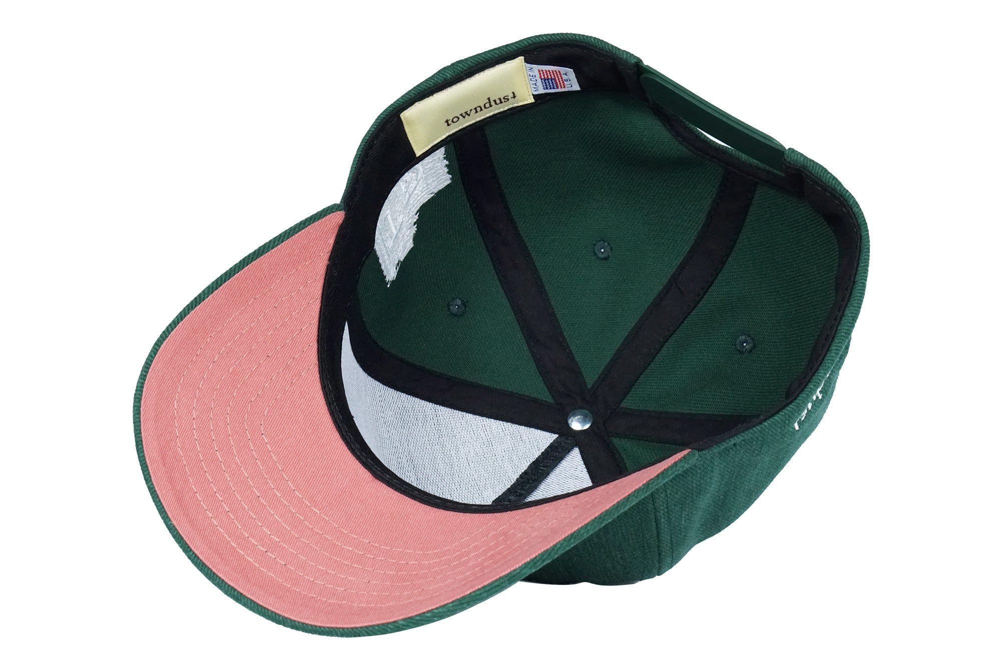 • forest green 12 oz. brushed bull denim, brick pink underbrim (green eggs & spam)